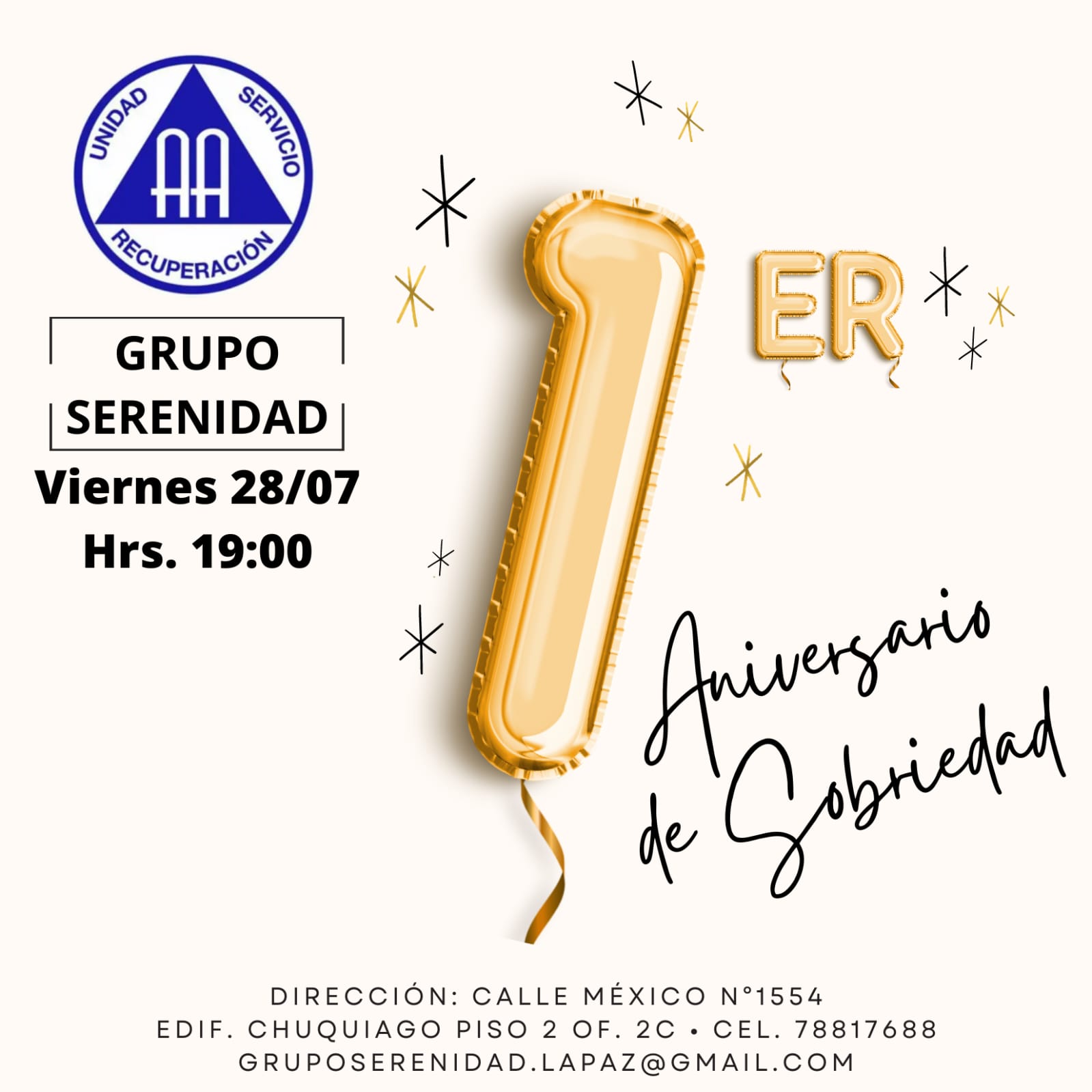 Acompañanos a celebrar el 1er Aniversario de Sobriedad junto a nuestro compañero!