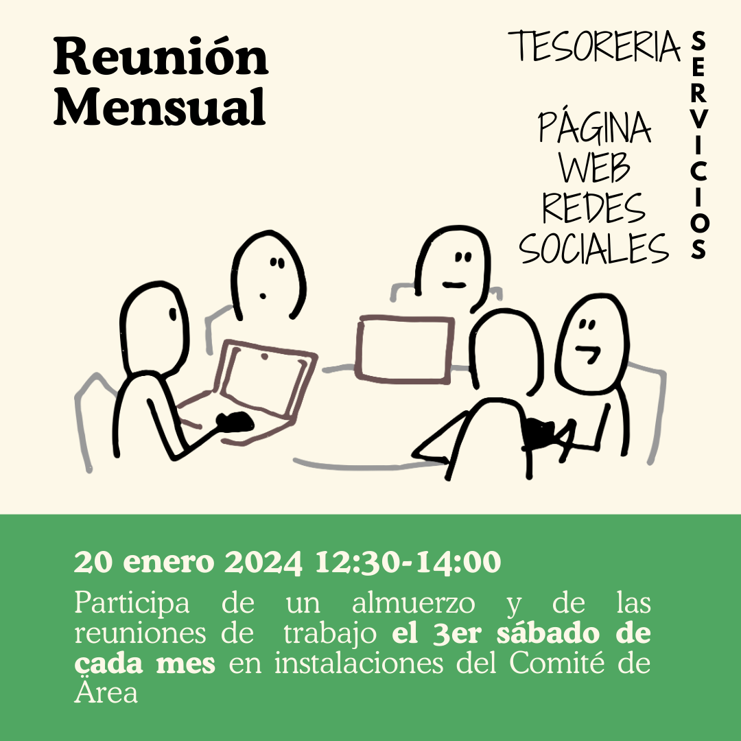 El 3er sábado de cada mes, los servidores de Tesorería y Redes Sociales de nuestros grupos, compartiremos un almuerzo de trabajo